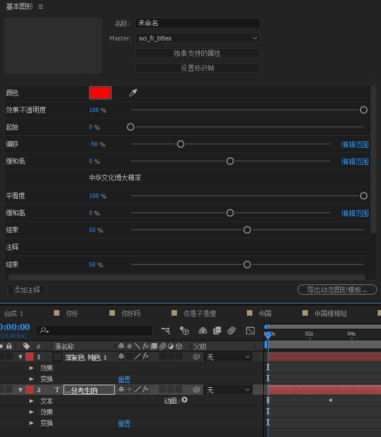 不在主要合成层级中的合成属性将被视为不相关的属性。将无关属性添加到基本图形面板时,会显示一条警告消息。系统仍会将这些属性添加到面板,但会高亮显示为红色。但是,在将合成导出为动态图形模板时,这些属性无法起作用。