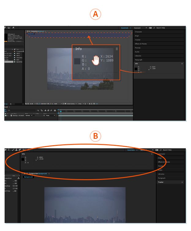 您可以使用堆叠面板组显示和隐藏通常在 After Effects 工作区右侧显示的面板。