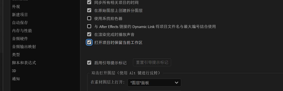 了解如何在打开使用不同的工作区设置保存的项目时保留工作区布局。