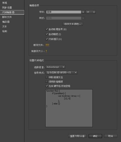 在“代码编辑器”选项卡中,可以设置让代码在 Flash 中如何显示。