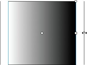 调整渐变的宽度。 宽度手柄(方形手柄)的变换图标是一个双头箭头。