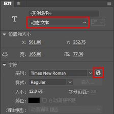 在“属性”面板中,选择“动态文本”,然后单击“字体系列”下拉框旁边的“添加 Web 字体”按钮。
