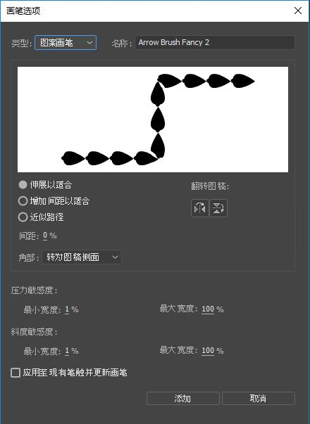 - 拉伸以适合笔触长度:拉伸艺术画笔以适合笔触长度。