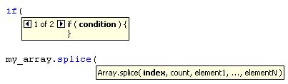 像 gotoAndPlay() 或 for 之类的重载命令(即可以用不同参数集调用的函数或方法)会显示一个指示器,让您选择要设置的参数。 要选择参数,请单击小箭头或者按下 Ctrl+向左箭头组合键和 Ctrl+右箭头组合键。