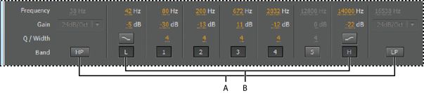 设置频段的提升或衰减值,以及带通滤波器的每个八度音阶的斜率。