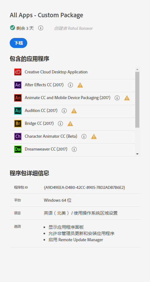 如果 Adobe 对程序包中包含的任何应用程序进行了升级,则该程序包将不再是最新的程序包。