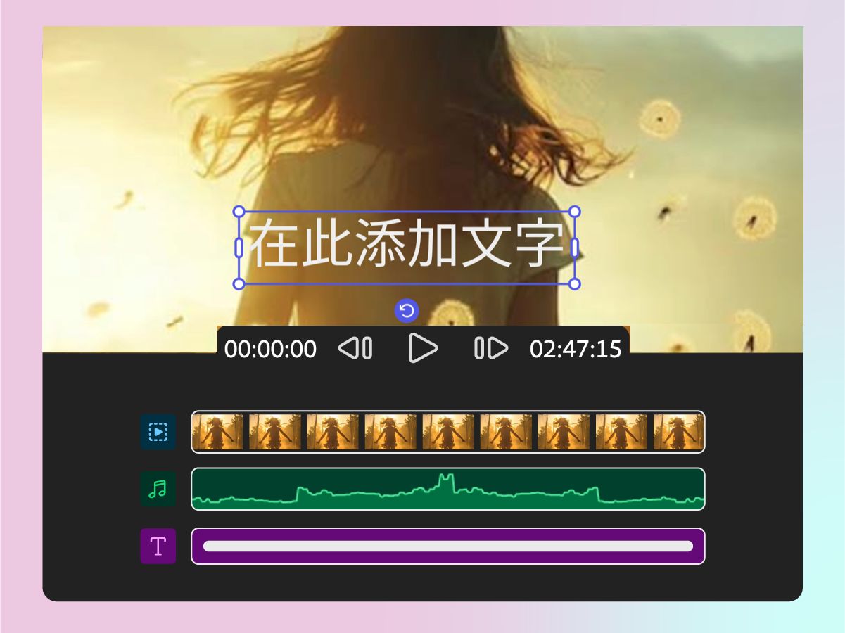 在可视化时间线上排列、调整和执行视频剪辑、音频、图像和文本的编辑操作。