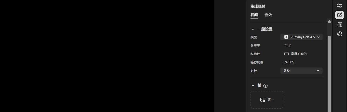 在右侧面板中选择生成媒体图标,然后根据需要选择视频面板。