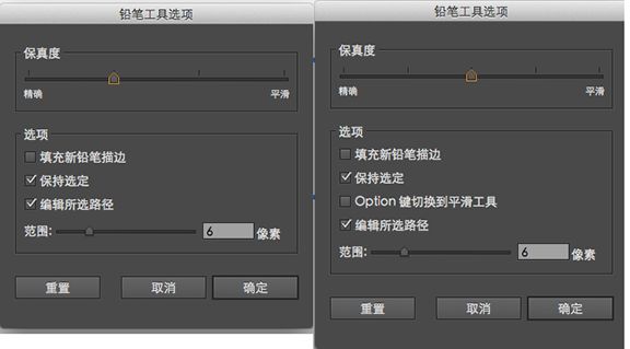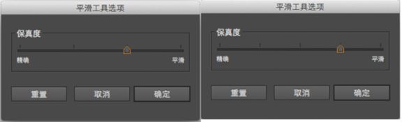 双击“工具箱”中的“平滑”工具图标,以打开“平滑工具选项”对话框。基于预设的“保真度”滑块可用于“平滑”工具。