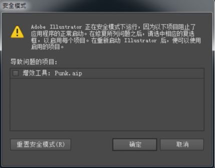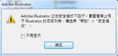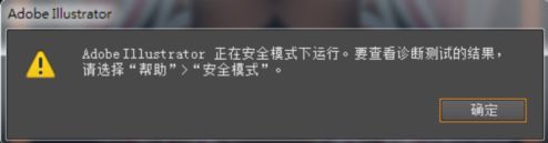 当诊断检查发现所有导致错误的文件后,Illustrator 将会启动,并显示一个对话框,指示 Illustrator 正在“安全模式”下运行。