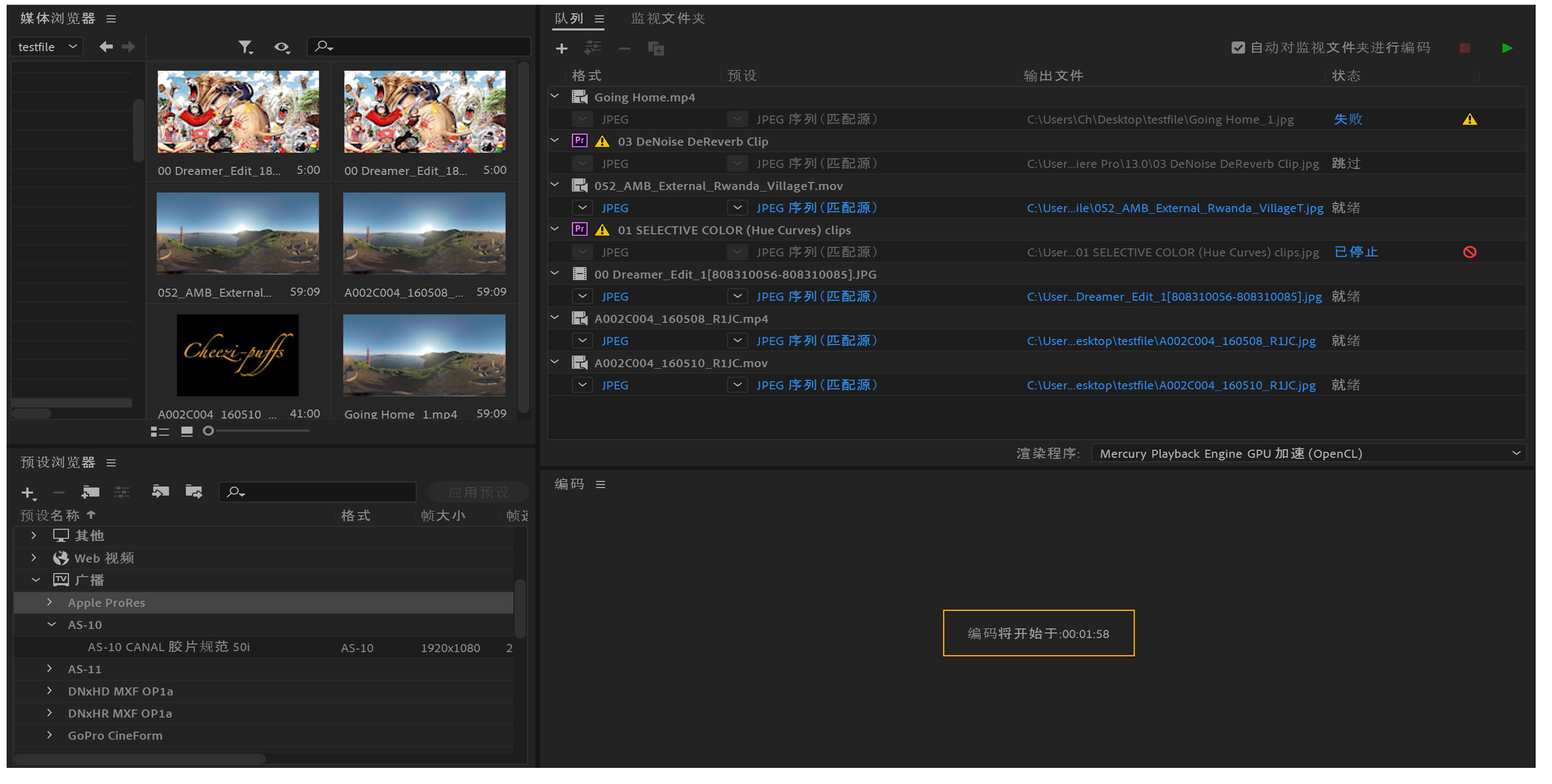 Adobe Media Encoder 在尝试对指定项目编码时遇到了错误。 |