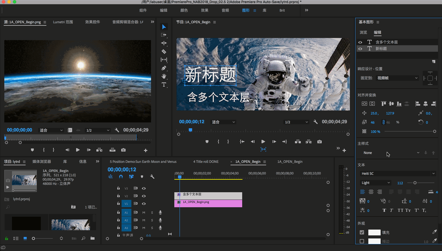 从 Premiere Pro 25.0 版开始,基本图形面板不再包含在内。您现在可以使用新的属性面板更高效地编辑标题、字幕、音频、视频和图形,并使用图形模板面板浏览动态图形和 Stock 音频。