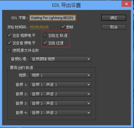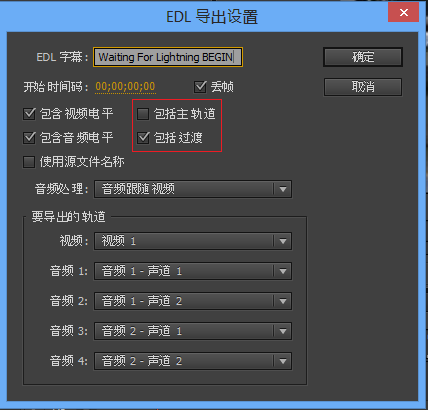 “EDL 导出”对话框中包含两个新选项,可用于包括或排除主轨道和过渡。