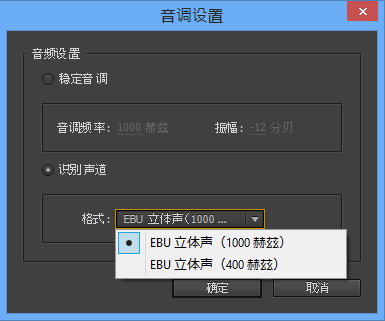 Premiere Pro 提供了新的“音调设置”对话框,可用于在 -20dB 振幅下创建彩条剪辑。