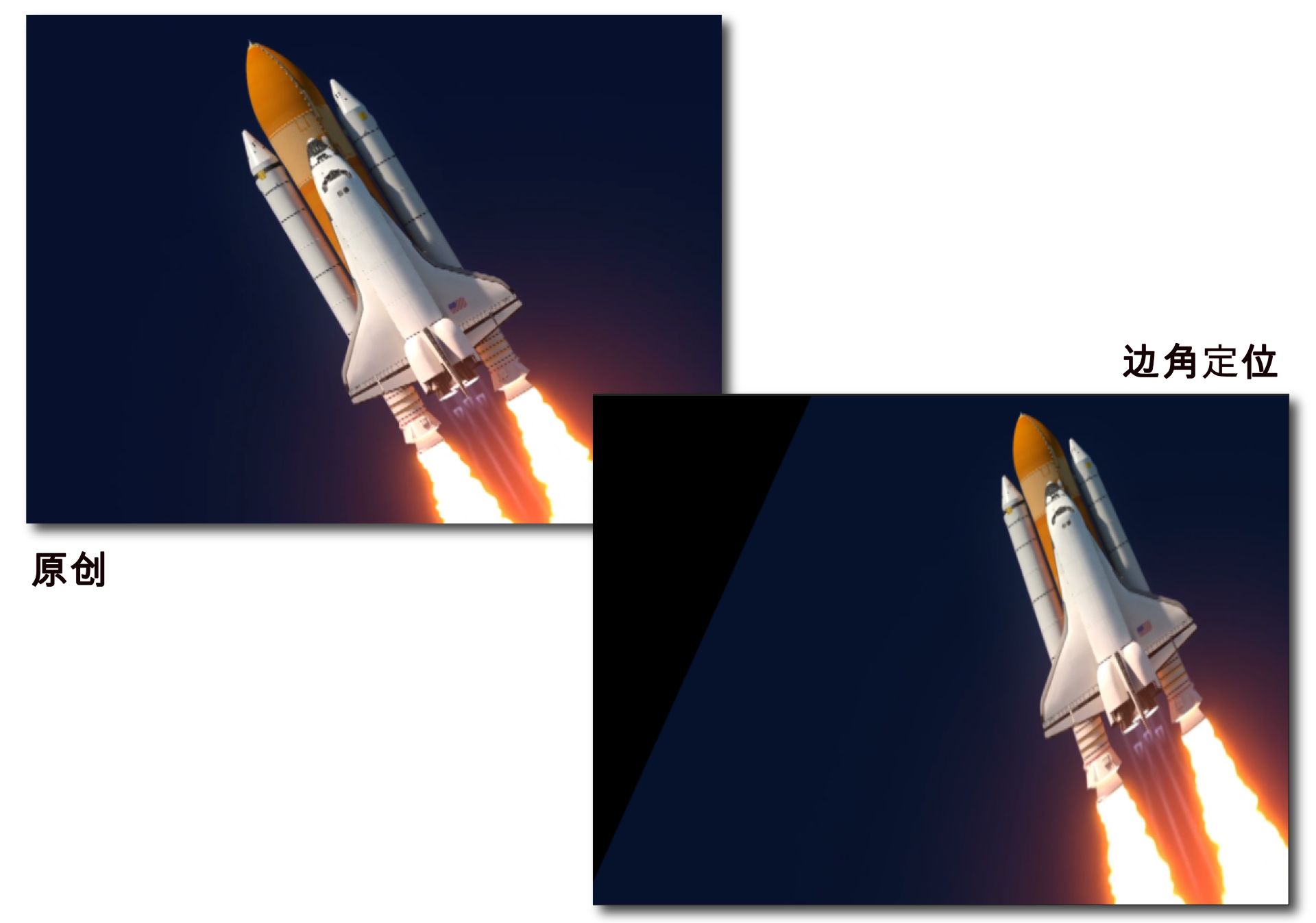该效果通过移动图像的四个角来扭曲图像。可用它来拉伸、收缩、倾斜、扭曲,或模拟透视效果及类似开门动作的铰链式运动。
