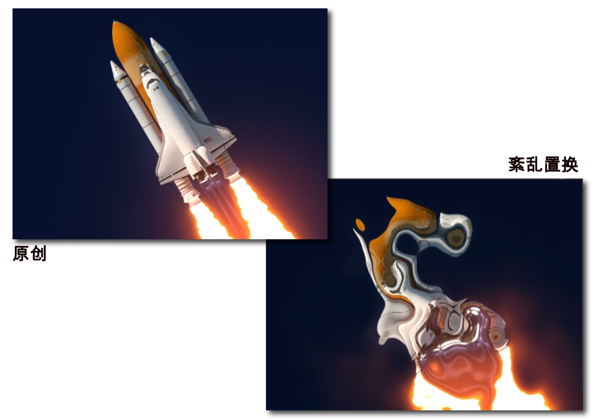 湍流置换效果使用不规则杂色在图像中创建湍流扭曲。 例如,将其用于创建流水、哈哈镜和飞舞的旗帜。