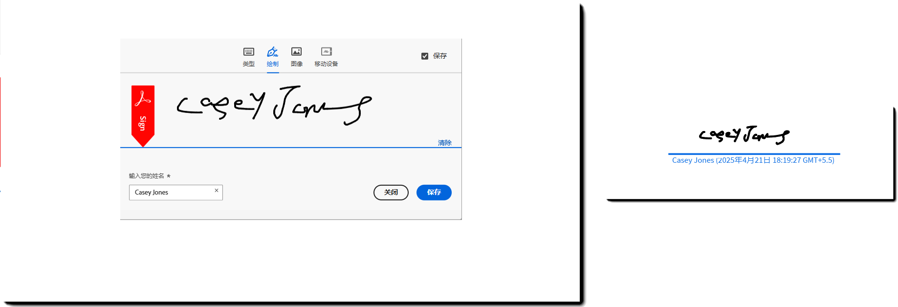 这样,收件人就可以使用鼠标、触笔或手指来绘制其签名,从而提供最接近其实际手写签名的一种表示形式,尤其是在支持触控的设备上。