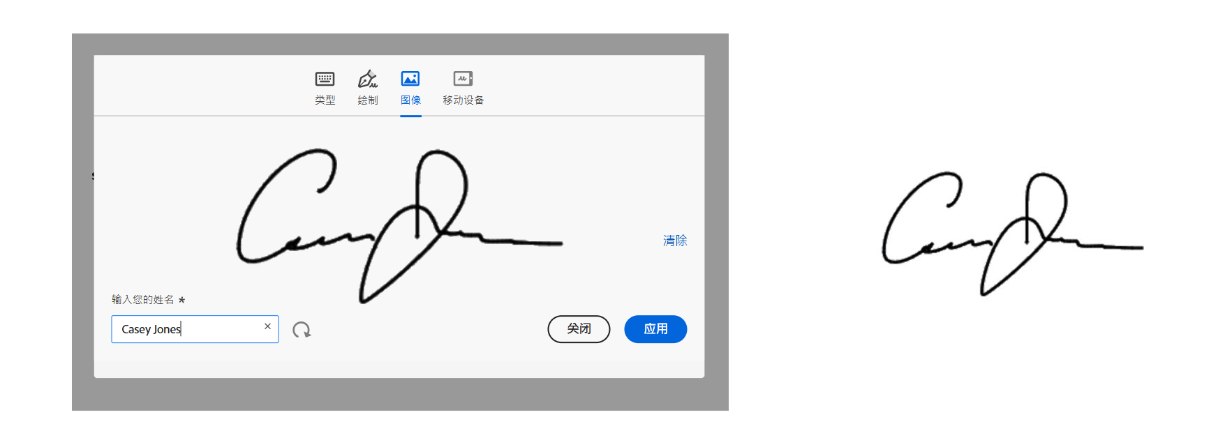 此选项非常适合那些经常签署文档并希望重复使用以标准图像格式(如 JPG 或 PNG)保存的签名扫描版本的收件人。