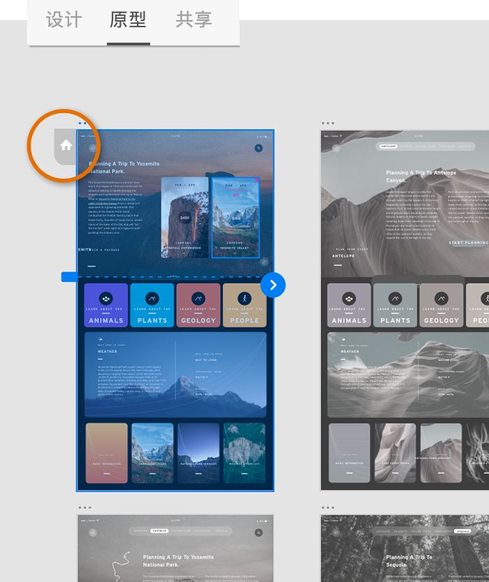 此外,如果您在预览原型时并没有选择任何内容,预览将从“主页”屏幕开始。也就是说,默认情况下,您的“主页”屏幕会被设置为第一个添加连线的画板。