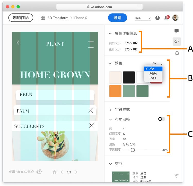 要详细了解如何在 XD 中检查设计规范,请观看此视频。