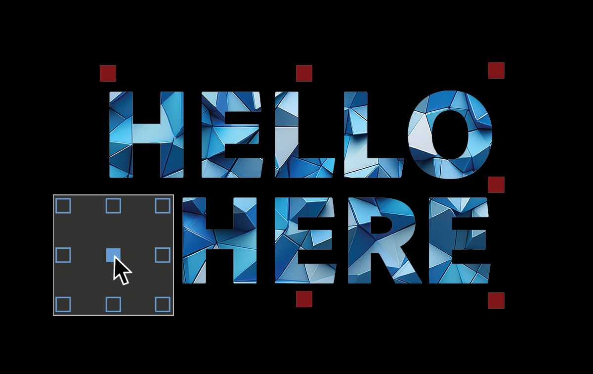 Ajuste el punto de anclaje en capas 2D con Establecer anclaje rápido utilizando el panel Propiedades o un método abreviado de teclado.