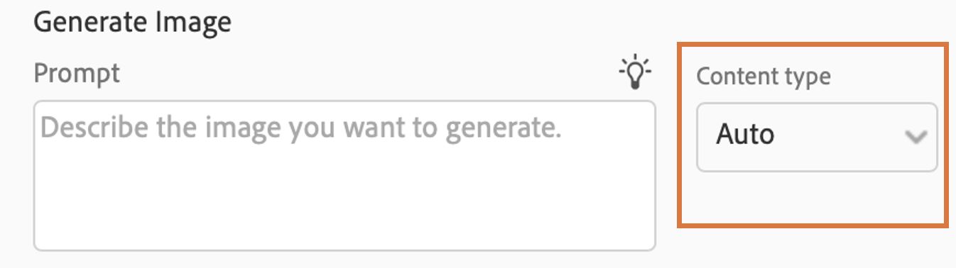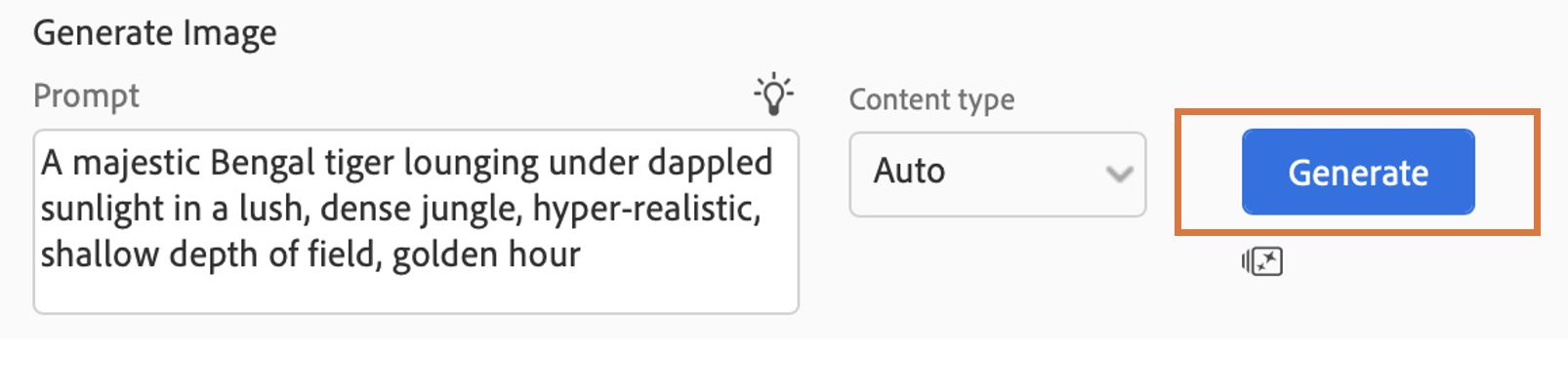 4. Después de escribir una indicación y seleccionar el tipo de contenido, haga clic en Generar.