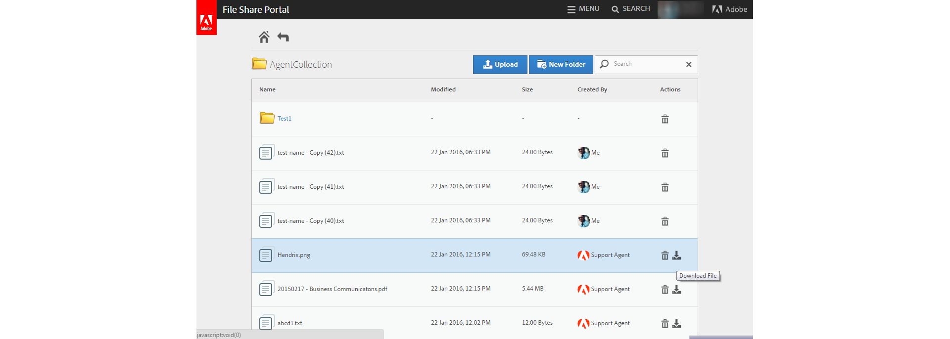 Únicamente puede descargar los archivos del portal que hayan cargado los agentes de asistencia de Adobe.
