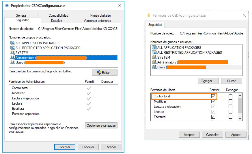 - Aviso de aplicación bloqueada al iniciar XD en Windows