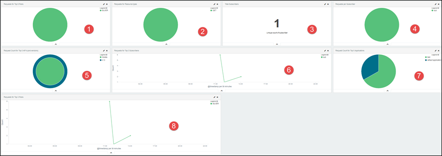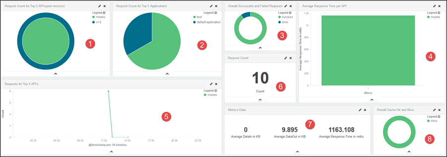 APIs: On the APIs dashboard panel, you can see the following visualizations: