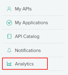 The analytics dashboard for a subscriber consists visualizations for the number of applications, number of API requests, and API errors. Click Analytics to launch the Subscriber analytics dashboard page.