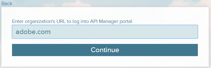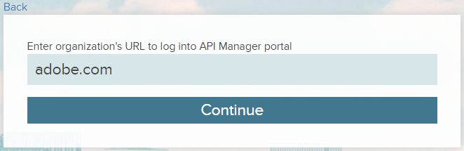 Once the organization Admin clicks Continue, the organization Admin then logs in to the organization Admin portal using the required credentials that you (API Manager admin) had created previously.