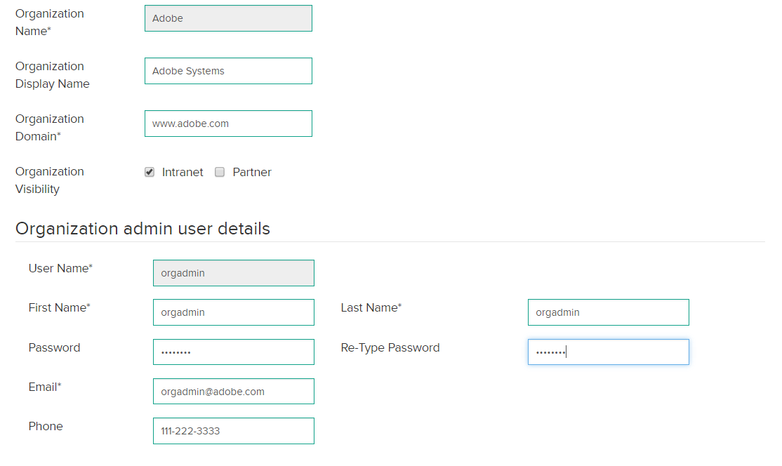 To create an organization, you require the following organization details: