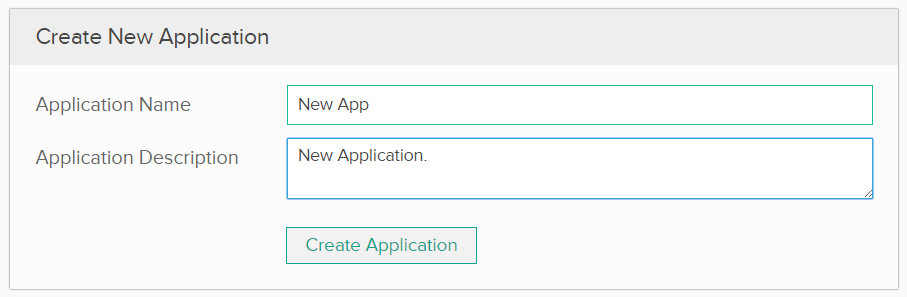 Create an application first. Click My Applications in the left navigation pane. Enter the name of the application and brief description.
