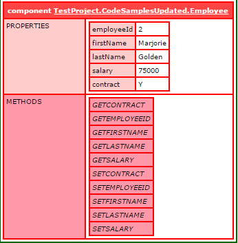 Give your CFC the same name as the table. For example, for the table called EMPLOYEE, create a CFC called Employee.cfc and add the following code: