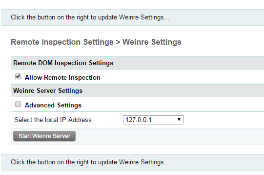 Step 2 – (Optional, if not Step 1) Provide the remote Weinre Server location