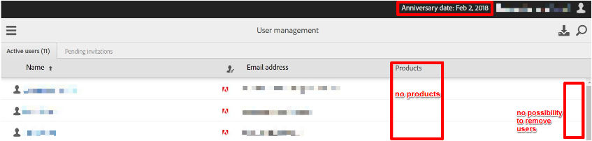 - No entitlement on admin console, displaying expiry date and list of users (this can also be users that do not exist in the organisation any more)