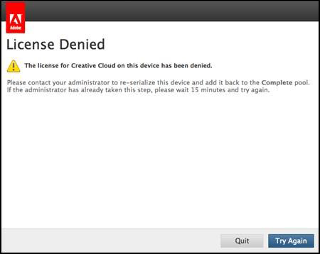 When users try to launch a product, the following screen is displayed because users are unable to activate device licenses on their computers: