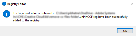 Note:If you want the Creative Cloud Files folder shortcut back in the Navigation panel, find and double-click rePinCCF.reg from the extracted folder, and follow the steps below.