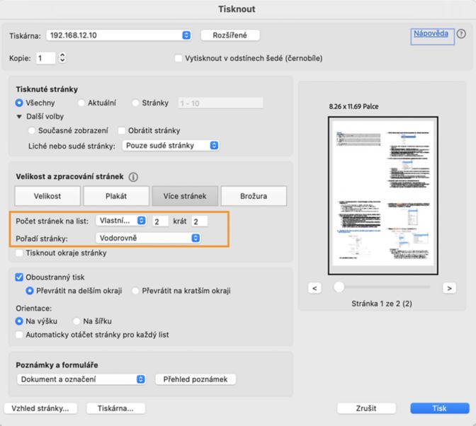 Na jeden list papíru můžete vytisknout více stránek PDF. Tisk více stránek na jeden list se také nazývá tisk N stránek na list (například tisk 2 nebo 6 stránek na list). Můžete určit, jak budou stránky uspořádány, buď vodorovně na stránku nebo ve svislých sloupcích.