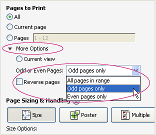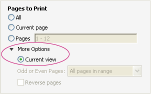 Chcete-li vytisknout aktuální zobrazení souboru PDF, klikněte v části Tisknuté stránky na možnost Další možnosti.