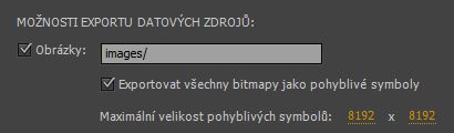 • Exportuje bitmapy jako pohyblivé symboly, a to podle voleb, které máte nastavené na panelu Pohyblivý symbol v Nastaveních publikování.