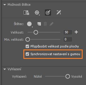 Synchronizace nastavení v nástrojích Štětec a Guma