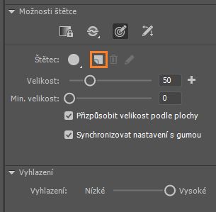 Požadovanou velikost štětce nastavíte možností Velikost.