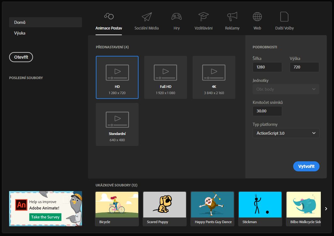 3. Vytváření a publikování dokumentů HTML5 Canvas v aplikaci Animate