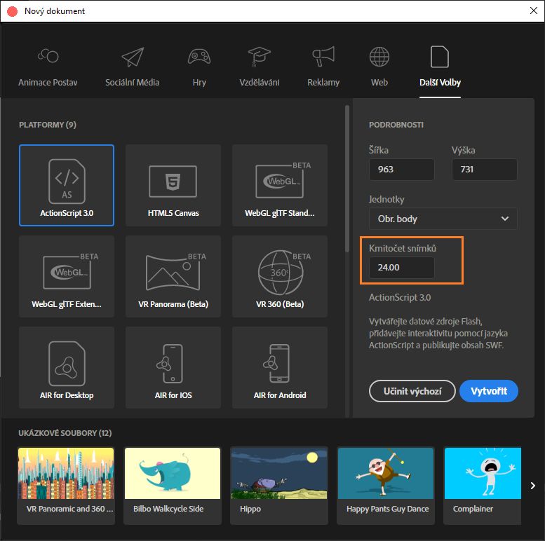 2. Převod projektů aplikace Animate na jiné typy dokumentů