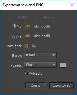 - Pokud je na kořenové časové ose více než jeden snímek, export začne od snímku 2.