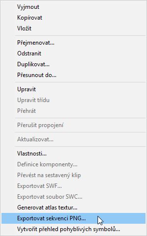 - Pokud je na kořenové časové ose pouze jediný snímek, bude export zahrnovat také snímek 1.
