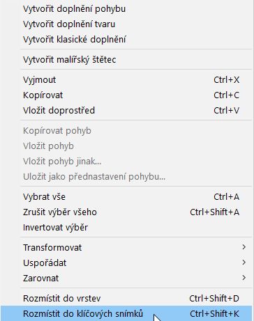 Klikněte pravým tlačítkem myši na libovolné místo na ploše a vyberte příkaz Rozmístit do klíčových snímků.