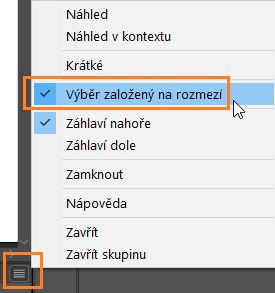 V místní nabídce vyberte možnost Výběr založený na rozmezí.