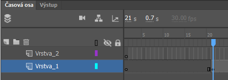 Klíčový snímek je snímek, ve kterém se v časové ose zobrazí nová instance symbolu. Také to může být snímek, který obsahuje kód v jazyce ActionScript® sloužící k řízení určitého aspektu dokumentu. Na časovou osu můžete také přidat prázdný klíčový snímek. Použije se jako zástupce symbolů, které chcete přidat později. Snímek také můžete nechat záměrně prázdný.